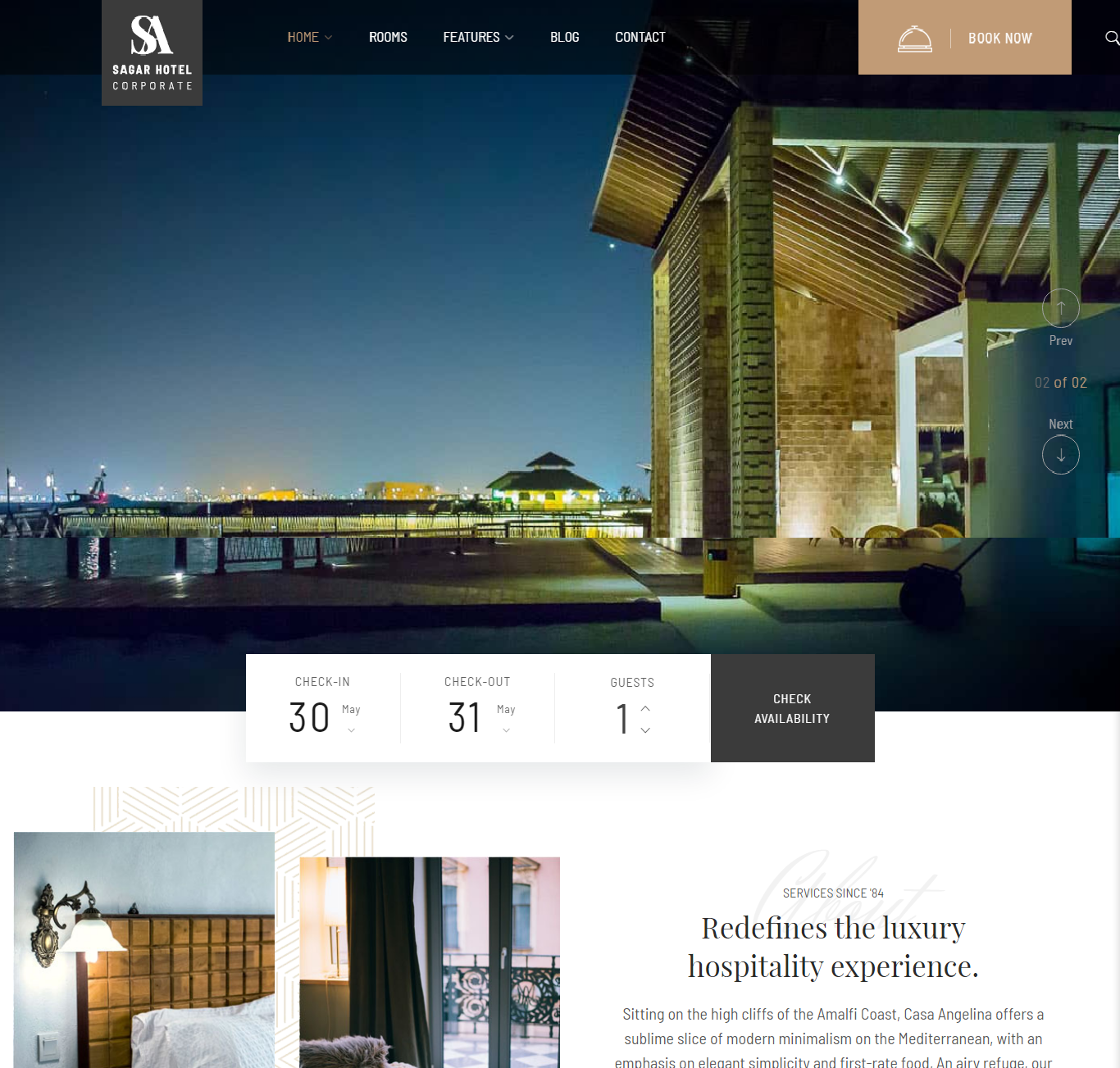 Erios is another elegant theme that has been designed with hotel booking in mind. It has four distinguished front page options as well as three unique header options to change the entire look of your website within few clicks. Plethora of elementor blocks may help to tweak your website how you want.